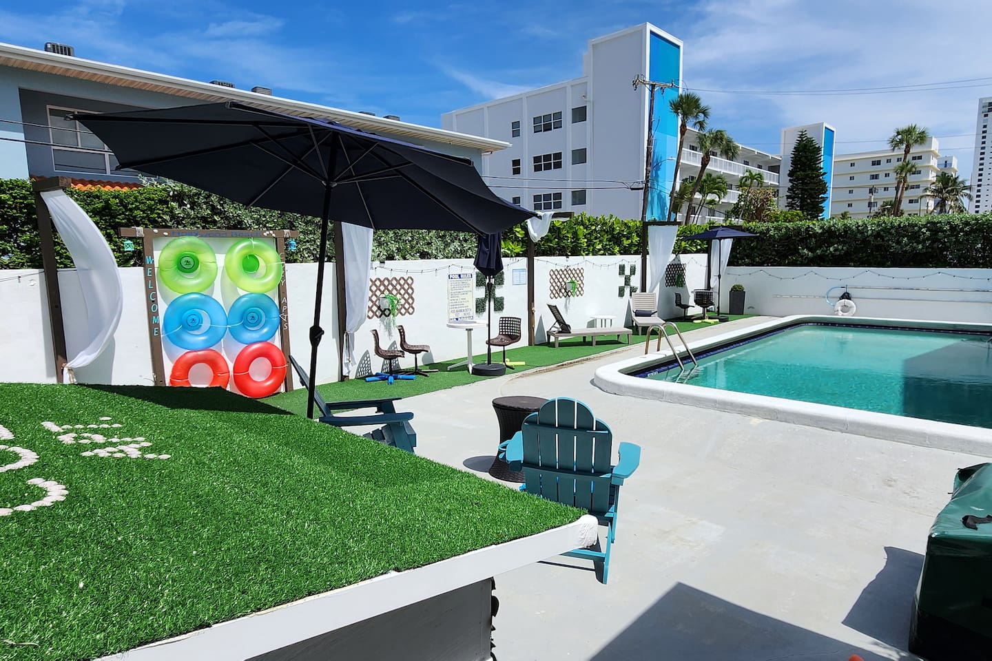 Please contact us for options should you have more guests than the limit for this unit. You will have access to the entire place., including: - 1 Queen bed, 1 Bunk bed (Full and Twin). 1 sofa beds - 1 Full Bathrooms - 1 full kitchen including refrigerator, stove, oven microwave oven, sink, coffee machine, etc.; and - 1 cozy dining/living room. This unit includes one on-site parking space. For additional parking, there is on-street parking right in front of the building where the unit is located, too. There is also public parking lot about four blocks away. The beach is few steps from the building (less than 80 steps), approximately 20 seconds walking. The unit is 0.3 miles from Hollywood Broadwalk (around 5 blocks). Please note that smoking is strictly prohibited in the entire building including this unit, in common areas such as the laundry and the pool area, and areas surrounding the building such as the parking area.