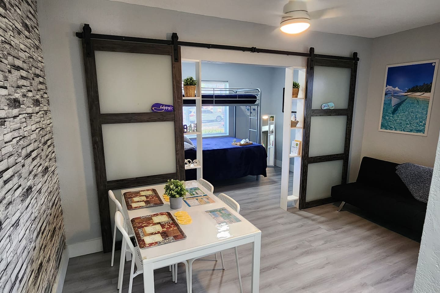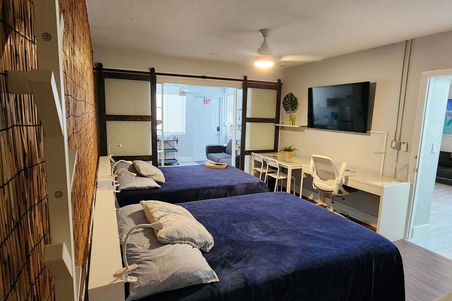 Two units in one: This unit may be split into two units, perfect for more than one family seeking their own private space with their own entrance. This special place is nested in a tranquil area and close to many points of interest, making it a perfect beach stay. You will enjoy majestic sunrise views from the beach, access to shopping, entertainment, a wide variety of restaurants, live music, water sports, bike paths, and Hollywood Beach's famous Broadwalk nearly 2.5 miles along.