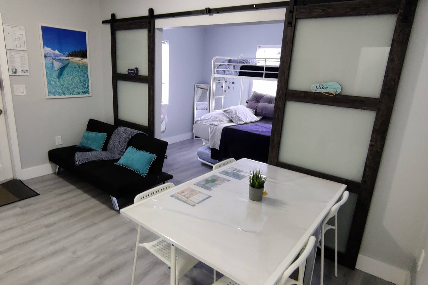 Please contact us for options should you have more guests than the limit for this unit. You will have access to the entire place., including: - 1 Queen bed, 1 Bunk bed (Full and Twin), 1 futon sofa bed. - 1 full kitchen including refrigerator, stove, oven, microwave oven, sink, coffee machine, etc.; and - 1 small cozy dining/living room. This unit includes 1 on-site parking space. For additional parking, there is on-street parking right in front of the building where the unit is located, too. There is also public parking lot about four blocks away. The beach is few steps from the building (less than 80 steps), approximately 20 seconds walking. Please note that smoking is strictly prohibited in the entire building including this unit, in common areas such as the laundry and the pool area, and areas surrounding the building such as the parking area.