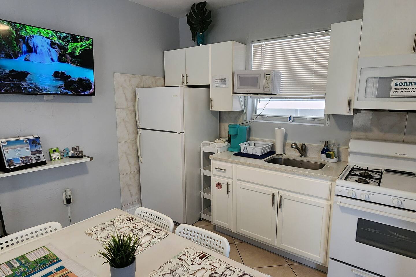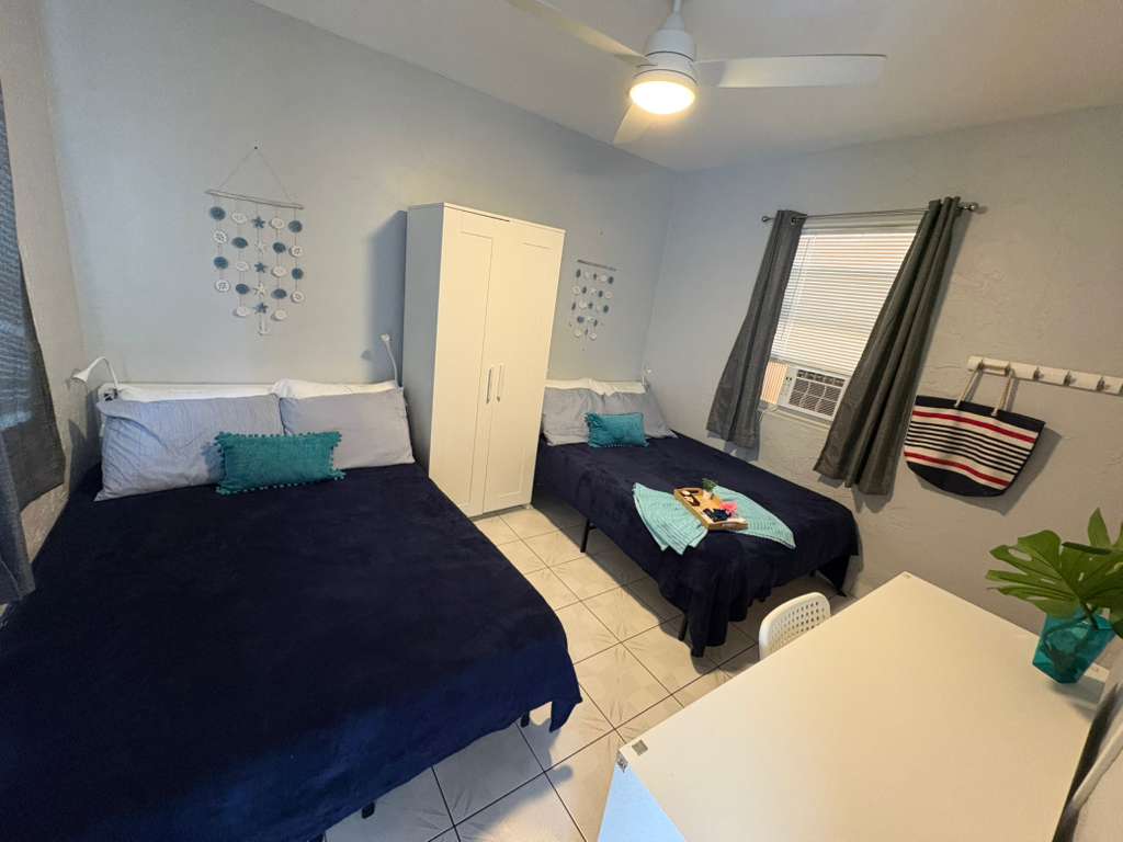 Please contact us for options should you have more guests than the limit for this unit. You will have access to the entire place., including: - 2 Full beds, 1 small futon - 1 Full kitchen including refrigerator, stove, oven, microwave oven, sink, coffee machine, etc.; and - 1 cozy small dining/living room. Each room has a smart TV. This unit includes one on-site parking space. For additional parking, there is on-street parking right in front of the building where the unit is located, too. There is also public parking lot about four blocks away. The beach is few steps from the building (less than 80 steps), approximately 20 seconds walking. The unit is 0.3 miles from Hollywood Broadwalk (around 5 blocks). Please note that smoking is strictly prohibited in the entire building including this unit, in common areas such as the laundry and the pool area, and areas surrounding the building such as the parking area.